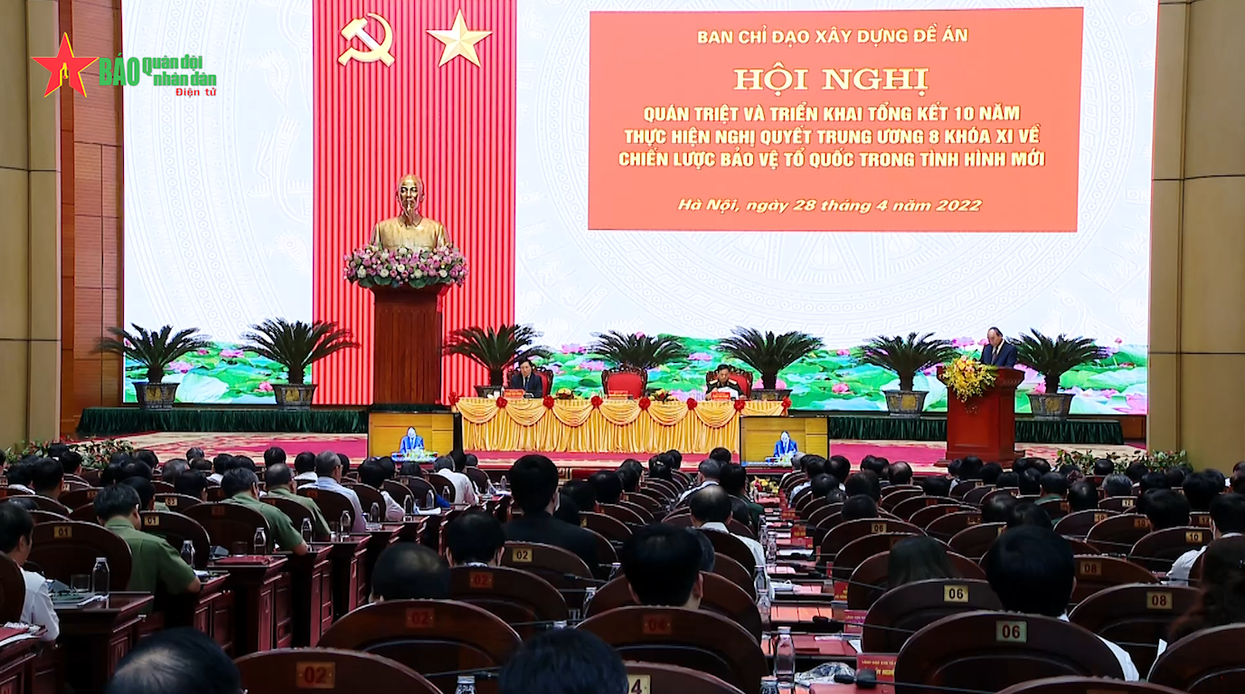 Sáng 28-4, tại Hà Nội, đã diễn ra Hội nghị Tổng kết 10 năm thực hiện Nghị quyết Trung ương 8 khóa XI về Chiến lược bảo vệ Tổ quốc trong tình hình mới. Đồng chí Nguyễn Xuân Phúc, Ủy viên Bộ Chính trị, Chủ tịch nước, Trưởng ban chỉ đạo, chủ trì hội nghị.