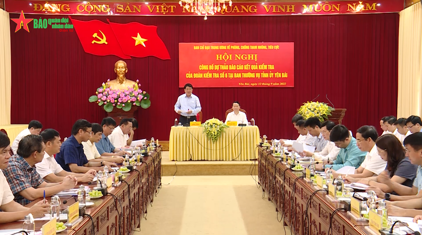 Chiều 12-9, tại Yên Bái, Đại tướng Lương Cường, Chủ nhiệm Tổng cục Chính trị Quân đội nhân dân Việt Nam, Ủy viên Ban Chỉ đạo Trung ương về phòng, chống tham nhũng, tiêu cực, Chủ trì Hội nghị công bố dự thảo Báo cáo kết quả kiểm tra tại Ban Thường vụ Tỉnh ủy Yên Bái.