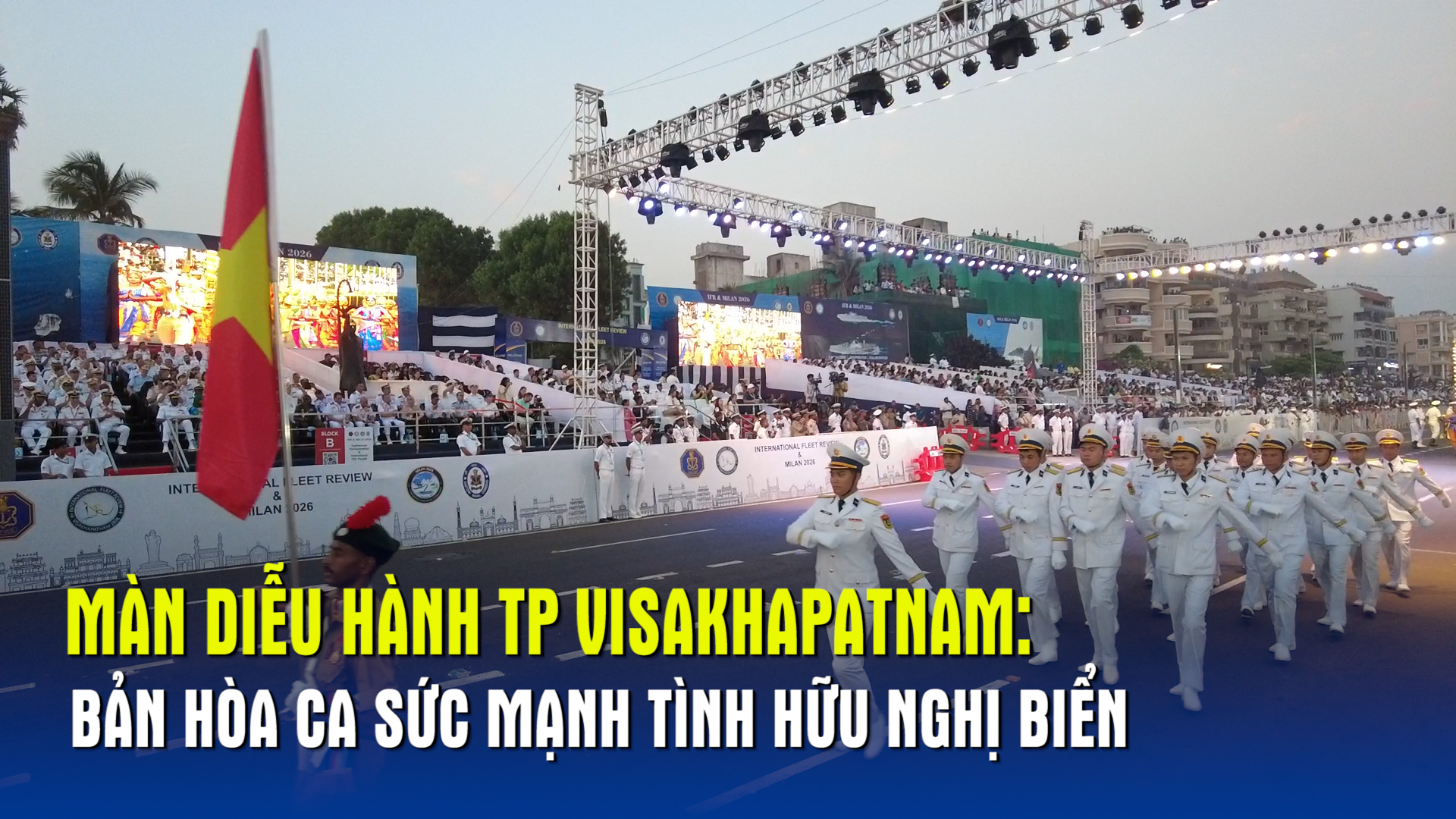Tối 19-2 tại Visakhapatnam, Diễu hành Thành phố Quốc tế trong khuôn khổ International Fleet Review 2026 diễn ra rực rỡ, tôn vinh sức mạnh hải quân, giao lưu văn hóa và tinh thần hữu nghị, hợp tác giữa các quốc gia trên biển.
