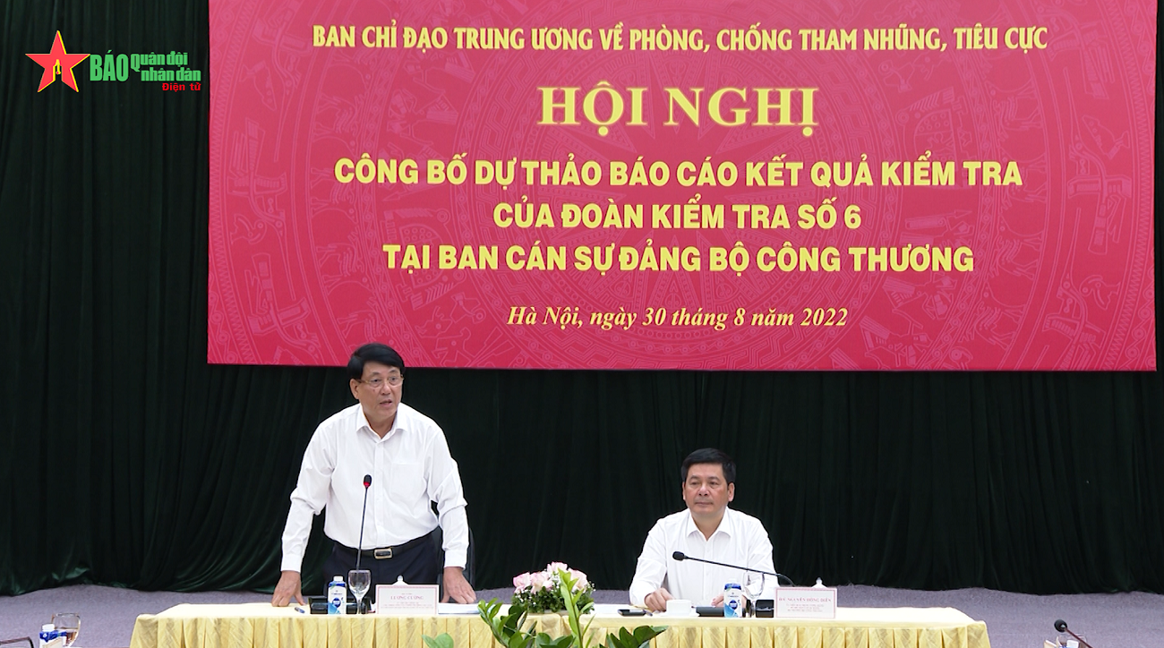 Sáng 30-8, tại Hà Nội, Đại tướng Lương Cường, Ủy viên Ban Chỉ đạo Trung ương về phòng, chống tham nhũng, tiêu cực, Trưởng đoàn kiểm tra số 6 chủ trì Hội nghị thông qua dự thảo Báo cáo kết quả kiểm tra việc lãnh đạo, chỉ đạo, tổ chức thực hiện tại Ban cán sự Đảng Bộ Công thương.