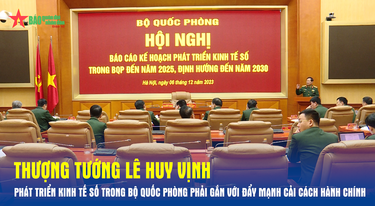 Ngày 6-12, tại Hà Nội, Bộ Quốc phòng tổ chức Hội nghị báo cáo Kế hoạch phát triển kinh tế số trong Bộ Quốc phòng đến năm 2025, định hướng đến năm 2030 dưới sự chủ trì của Thượng tướng Lê Huy Vịnh, Ủy viên Trung ương Đảng, Thứ trưởng Bộ Quốc phòng, Phó trưởng Ban chỉ đạo Cải cách hành chính và Chuyển đổi số Bộ Quốc phòng.