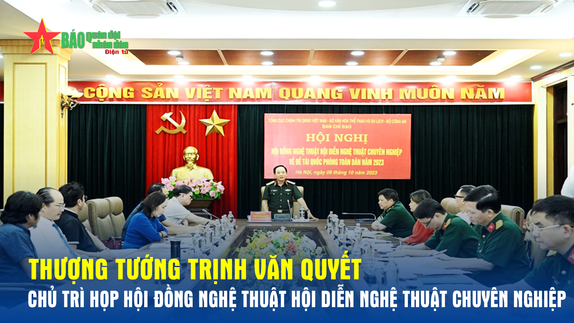 Ngày 9-10, Tổng cục Chính trị Quân đội nhân dân Việt Nam tổ chức họp Hội đồng nghệ thuật Hội diễn nghệ thuật chuyên nghiệp về đề tài Quốc phòng toàn dân năm 2023. Thượng tướng Trịnh Văn Quyết, Ủy viên Trung ương Đảng, Phó Chủ nhiệm Tổng cục Chính trị Quân đội nhân dân Việt Nam, Trưởng ban chỉ đạo hội diễn chủ trì cuộc họp.
