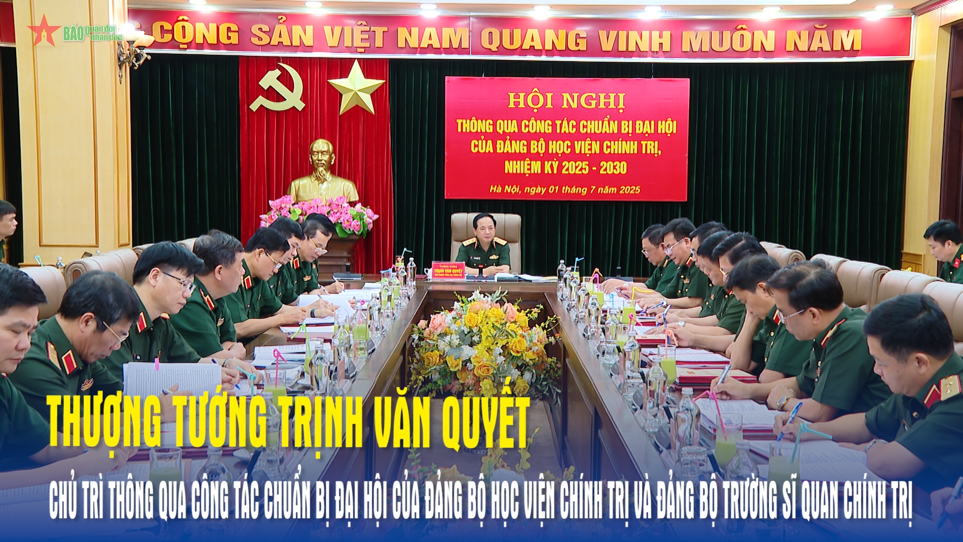 Chiều 1-7, tại Hà Nội, Thượng tướng Trịnh Văn Quyết, Bí thư Trung ương Đảng, Ủy viên Thường vụ Quân ủy Trung ương, Chủ nhiệm Tổng cục Chính trị Quân đội nhân dân Việt Nam chủ trì Hội nghị thông qua công tác chuẩn bị Đại hội của Đảng bộ Học viện Chính trị và Đảng bộ Trường Sĩ quan Chính trị.
