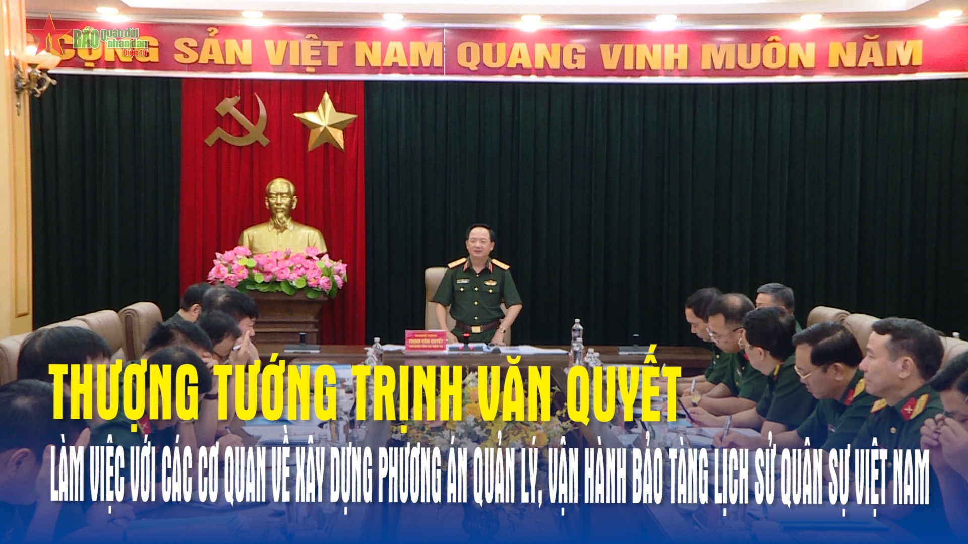 Sáng 8-8, tại Hà Nội, Thượng tướng Trịnh Văn Quyết, Ủy viên Trung ương Đảng, Ủy viên Thường vụ Quân ủy Trung ương, Chủ nhiệm Tổng cục Chính trị Quân đội nhân dân Việt Nam chủ trì buổi làm việc với các cơ quan chức năng Bộ Quốc phòng về phương án quản lý, vận hành Bảo tàng Lịch sử quân sự Việt Nam.