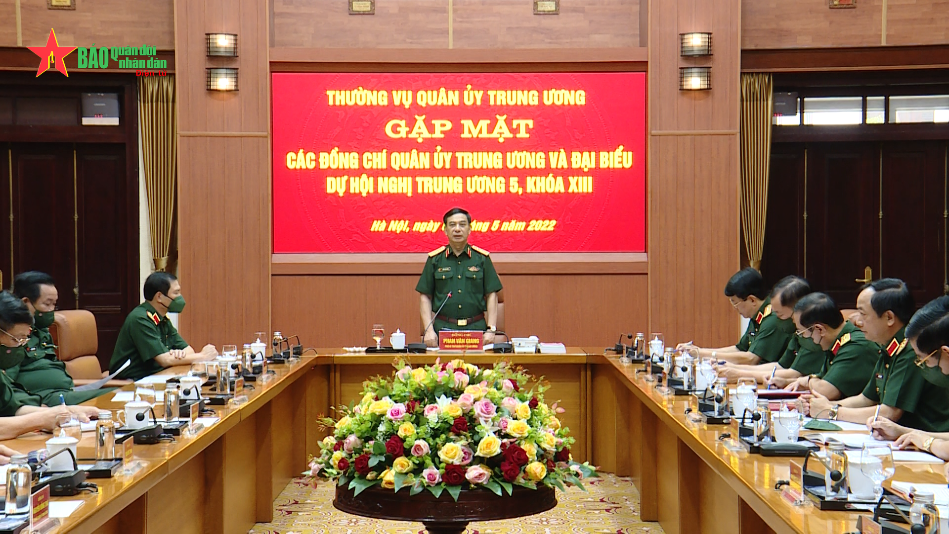 Chiều 3-5, Thường vụ Quân ủy Trung ương tổ chức gặp mặt các đồng chí Quân ủy Trung ương và đại biểu quân đội dự Hội nghị Trung ương 5, Khóa XIII. Đại tướng Phan Văn Giang, Ủy viên Bộ Chính trị, Phó bí thư Quân ủy Trung ương, Bộ Trưởng Bộ Quốc phòng dự và chỉ đạo.