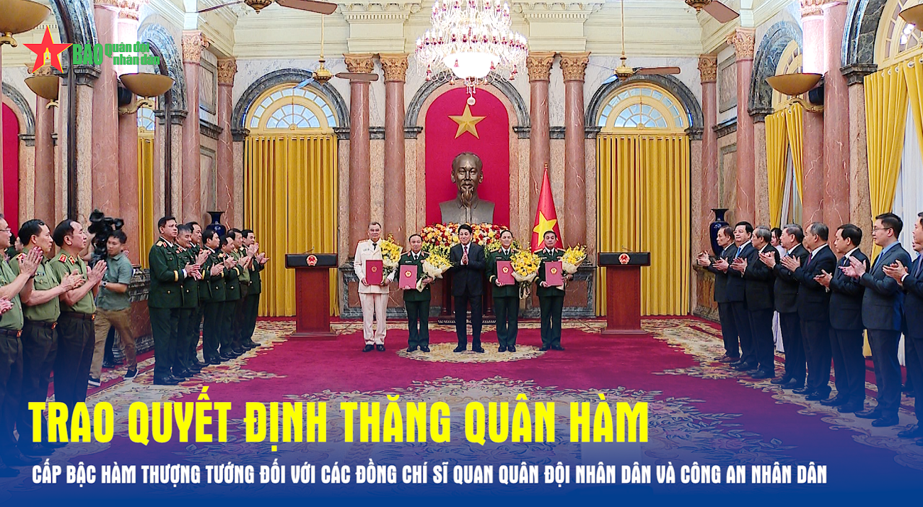 Chiều 1-8, tại Phủ Chủ tịch, Chủ tịch nước Lương Cường, Ủy viên Bộ Chính trị, Chủ tịch Hội đồng Quốc phòng và An ninh, Thống lĩnh Lực lượng vũ trang nhân dân đã chủ trì Lễ công bố, trao Quyết định thăng quân hàm cấp Thượng tướng đối với các đồng chí sĩ quan Quân đội nhân dân; thăng cấp bậc hàm Thượng tướng đối với sĩ quan Công an nhân dân.