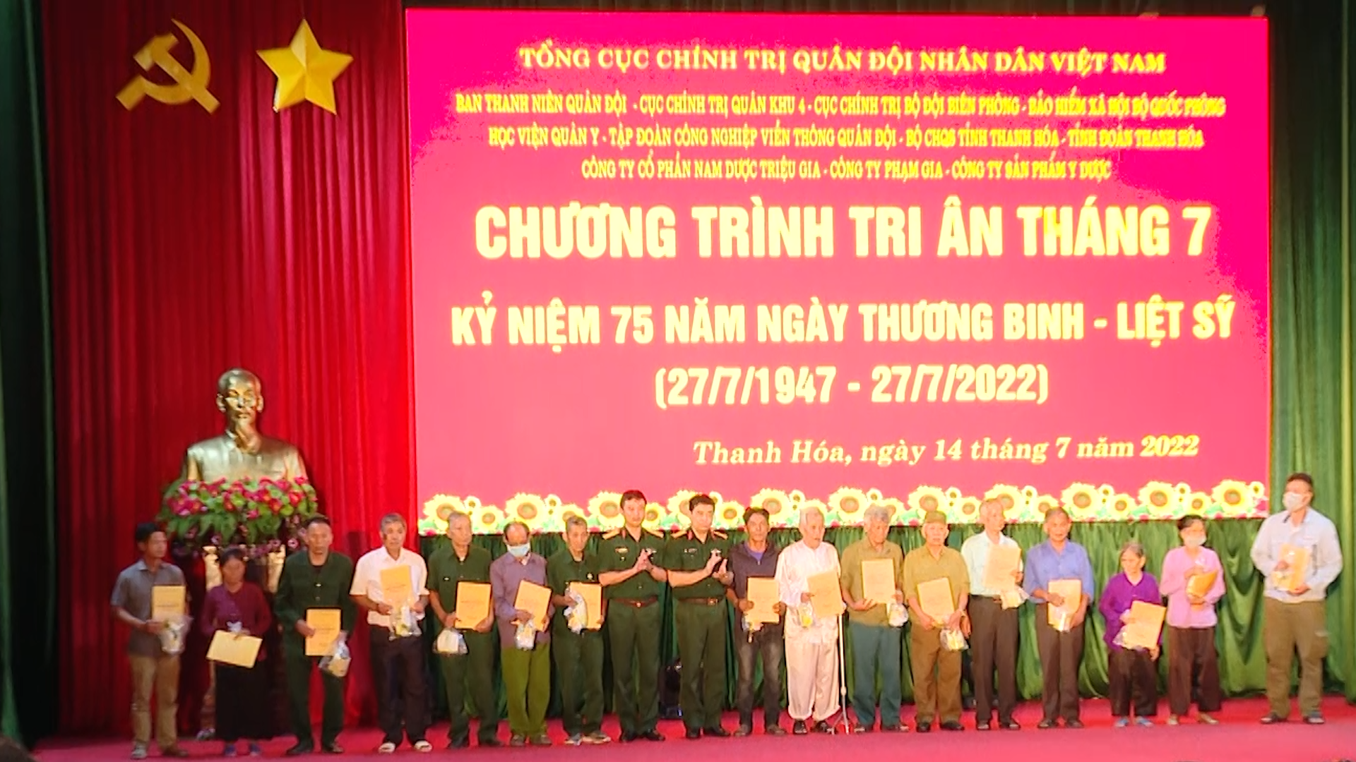 Chương trình “Tri ân Tháng 7 năm 2022” vừa được Ban Thanh niên Quân đội tổ chức tại huyện Hà Trung, tỉnh Thanh Hoá, với các hoạt động: Dâng hương Nghĩa trang Liệt sĩ; khám, tư vấn sức khoẻ, tặng quà, cấp thuốc miễn phí cho đối tượng chính sách...