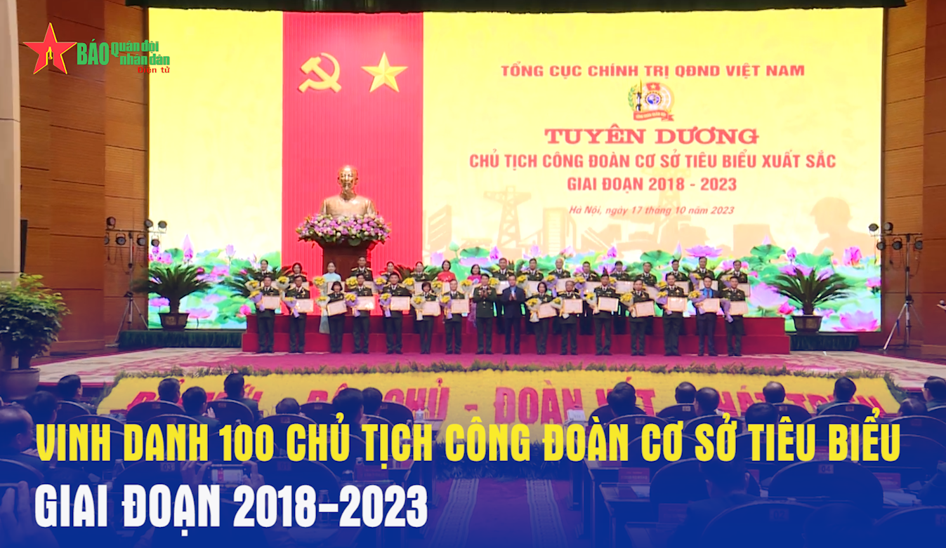 Tối 17-10, tại Hà Nội, Tổng cục Chính trị Quân đội nhân dân Việt Nam tổ chức Tuyên dương 100 chủ tịch công đoàn cơ sở tiêu biểu xuất sắc giai đoạn 2018-2023. Đại tướng Phan Văn Giang, Ủy viên Bộ Chính trị, Phó bí thư Quân ủy Trung ương, Bộ trưởng Bộ Quốc phòng dự chương trình. Đại tướng Lương Cường, Ủy viên Bộ Chính trị, Ủy viên Thường vụ Quân ủy Trung ương, Chủ nhiệm Tổng cục Chính trị Quân đội nhân dân Việt Nam dự và phát biểu chỉ đạo.