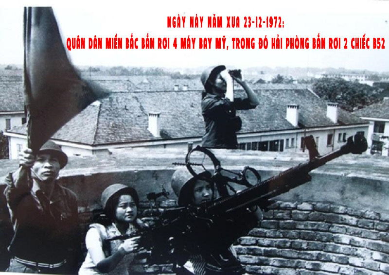 Ngày 23-12-1972: Quân ta ta bắn rơi 4 máy bay Mỹ, trong đó Hải Phòng bắn rơi 2 chiếc B52; Mỹ huy động 50 lần chiếc máy bay chiến thuật đánh ngoại thành Hà Nội.