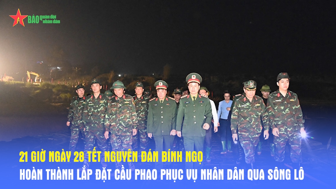 21 giờ ngày 28 Tết Nguyên đán Bính Ngọ hoàn thành lắp đặt cầu phao phục vụ nhân dân qua sông Lô