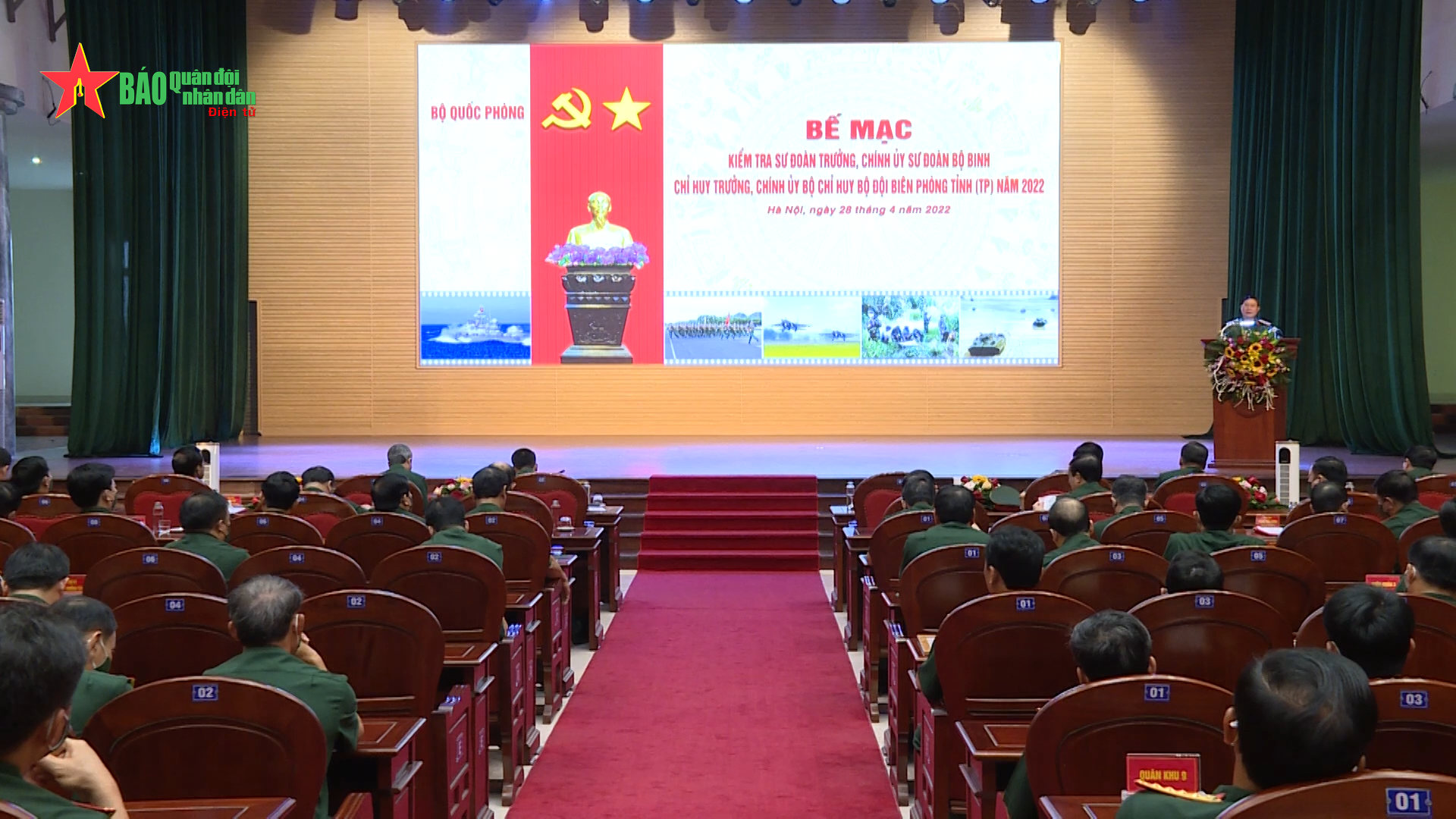 Chiều 28-4, tại Trung tâm Huấn luyện Quân sự Quốc gia 4 (Miếu Môn, Hà Nội), Bộ Quốc phòng tổ chức Bế mạc kiểm tra sư đoàn trưởng, chính ủy sư đoàn bộ binh; chỉ huy trưởng, chính ủy Bộ chỉ huy Bộ đội Biên phòng tỉnh (thành phố) năm 2022.