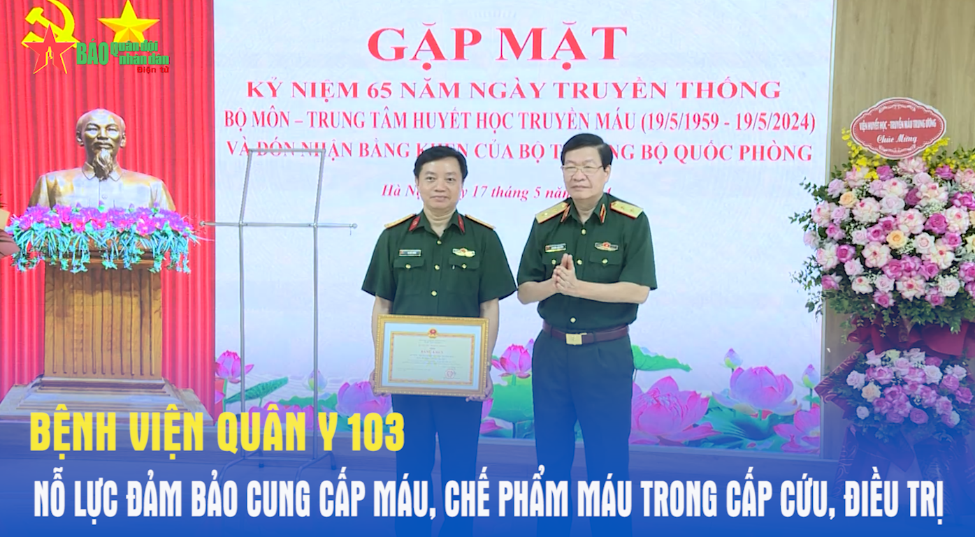 Ngày 17-5, Bộ môn - Trung tâm Huyết học Truyền máu, Bệnh viện Quân y 103 (Học viện Quân y) tổ chức Gặp mặt kỷ niệm 65 năm Ngày truyền thống Bộ môn - Trung tâm (19-5-1959 – 19-5-2024) và đón nhận Bằng khen của Bộ trưởng Bộ Quốc phòng.