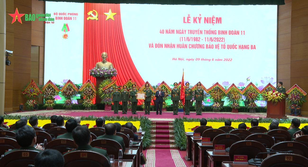Sáng 9-6, tại Hà Nội, Chủ tịch nước Nguyễn Xuân Phúc tới dự Lễ Kỷ niệm 40 năm Ngày truyền thống Binh đoàn 11 (11-6-1982 / 11-6-2022) và đón nhận Huân chương Bảo vệ Tổ quốc hạng Ba.