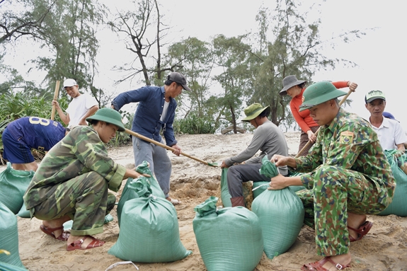 Bộ đội Biên phòng Thừa Thiên-Huế giúp dân gia cố bờ kè trước khi bão số 8 đổ bộ