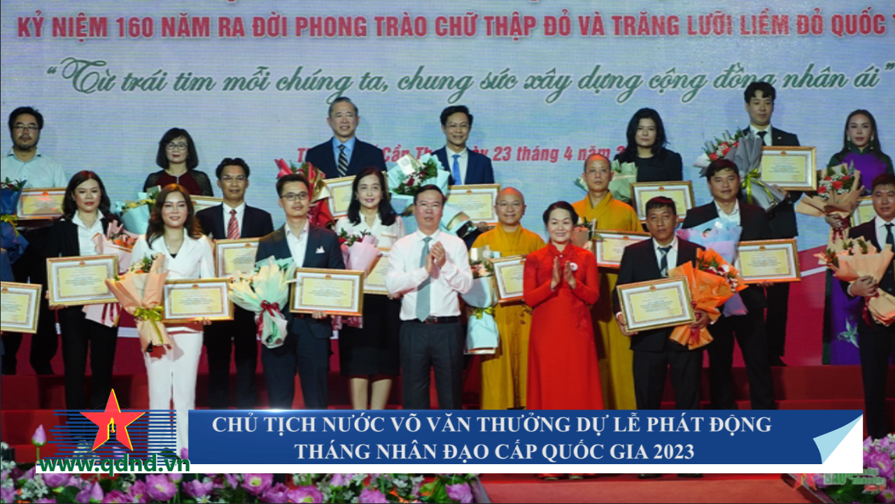 Ngày 23-4, Chủ tịch nước Võ Văn Thưởng dự Lễ phát động Tháng nhân đạo cấp quốc gia 2023 và kỷ niệm 160 năm ra đời phong trào Chữ thập đỏ và Trăng lưỡi liềm đỏ Quốc tế.