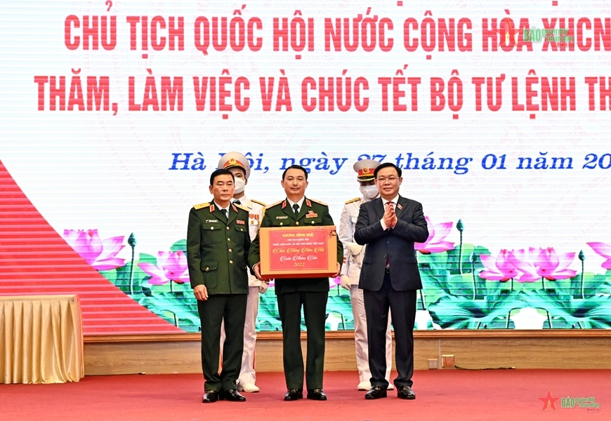 Chủ tịch Quốc hội Vương Đình Huệ thăm, làm việc, chúc Tết Bộ tư lệnh Thủ đô Hà Nội