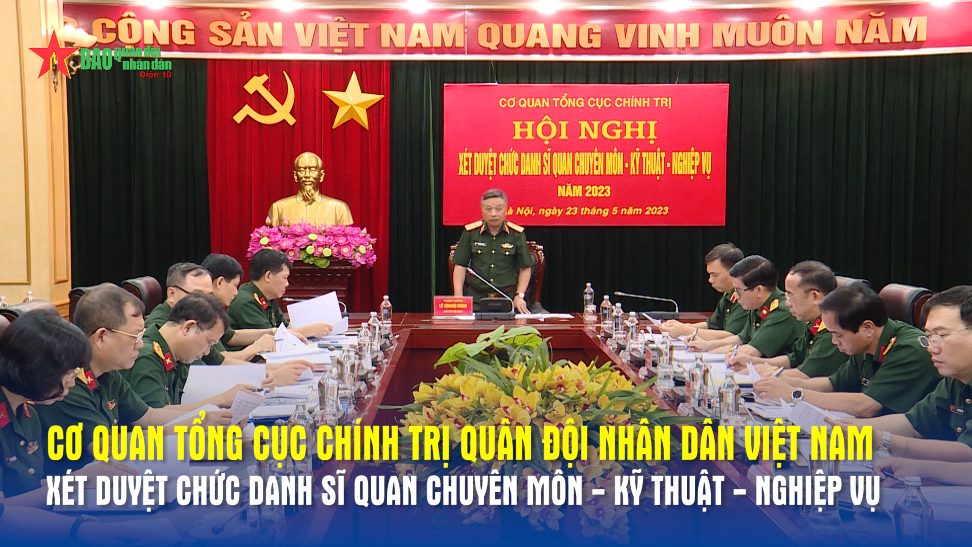 Sáng 23-5, Trung tướng Lê Quang Minh, Phó chủ nhiệm Tổng cục Chính trị Quân đội nhân dân Việt Nam, Bí thư Đảng ủy Cơ quan Tổng cục Chính trị chủ trì hội nghị xét duyệt chức danh sĩ quan chuyên môn - kỹ thuật - nghiệp vụ năm 2023 Cơ quan Tổng cục Chính trị Quân đội nhân dân Việt Nam.