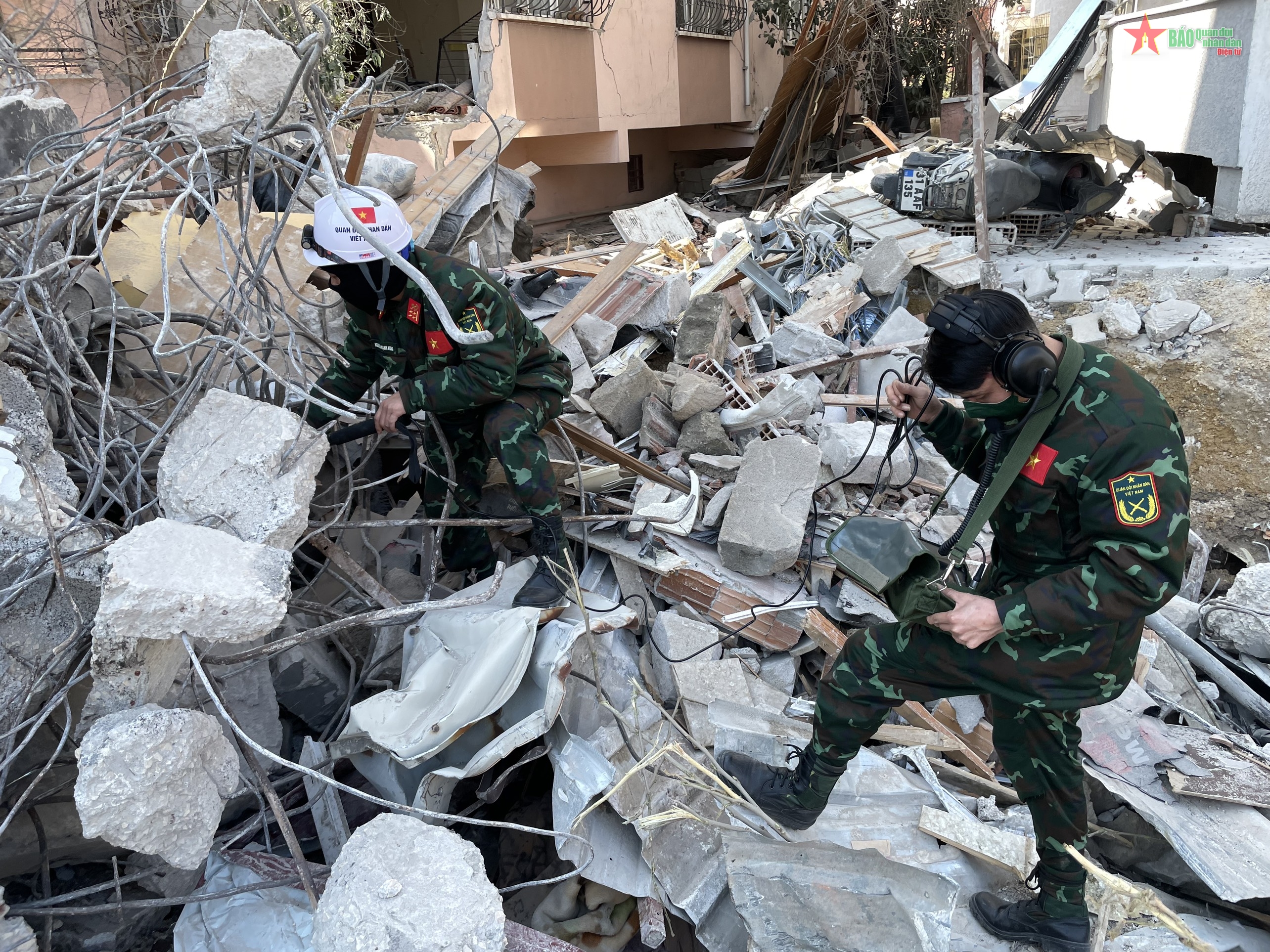 Ngay sau khi đến tỉnh Hatay, Thổ Nhĩ Kỳ, ngày 14-2, Tổ trinh sát số 1 của Đội Công binh cứu sập và Đội chó nghiệp vụ của Quân đội nhân dân (QĐND) Việt Nam bắt đầu hỗ trợ tìm kiếm cứu nạn tại tỉnh Hatay, Thổ Nhĩ Kỳ.