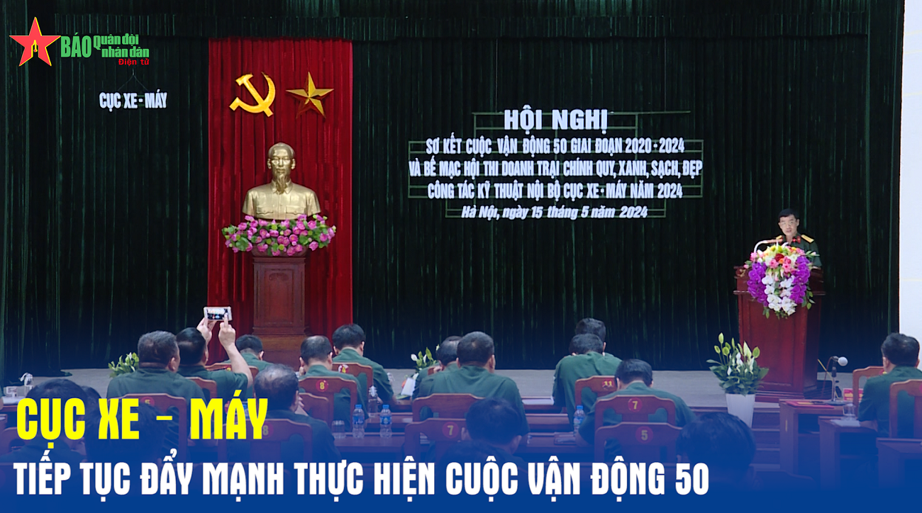 Sáng 15-5, tại Hà Nội, Cục Xe - Máy, Tổng cục Kỹ thuật tổ chức Hội nghị sơ kết Cuộc vận động 50 giai đoạn 2020-2024; Bế mạc Hội thi Doanh trại chính quy, xanh, sạch, đẹp và Công tác kỹ thuật nội bộ Cục Xe - Máy năm 2024.