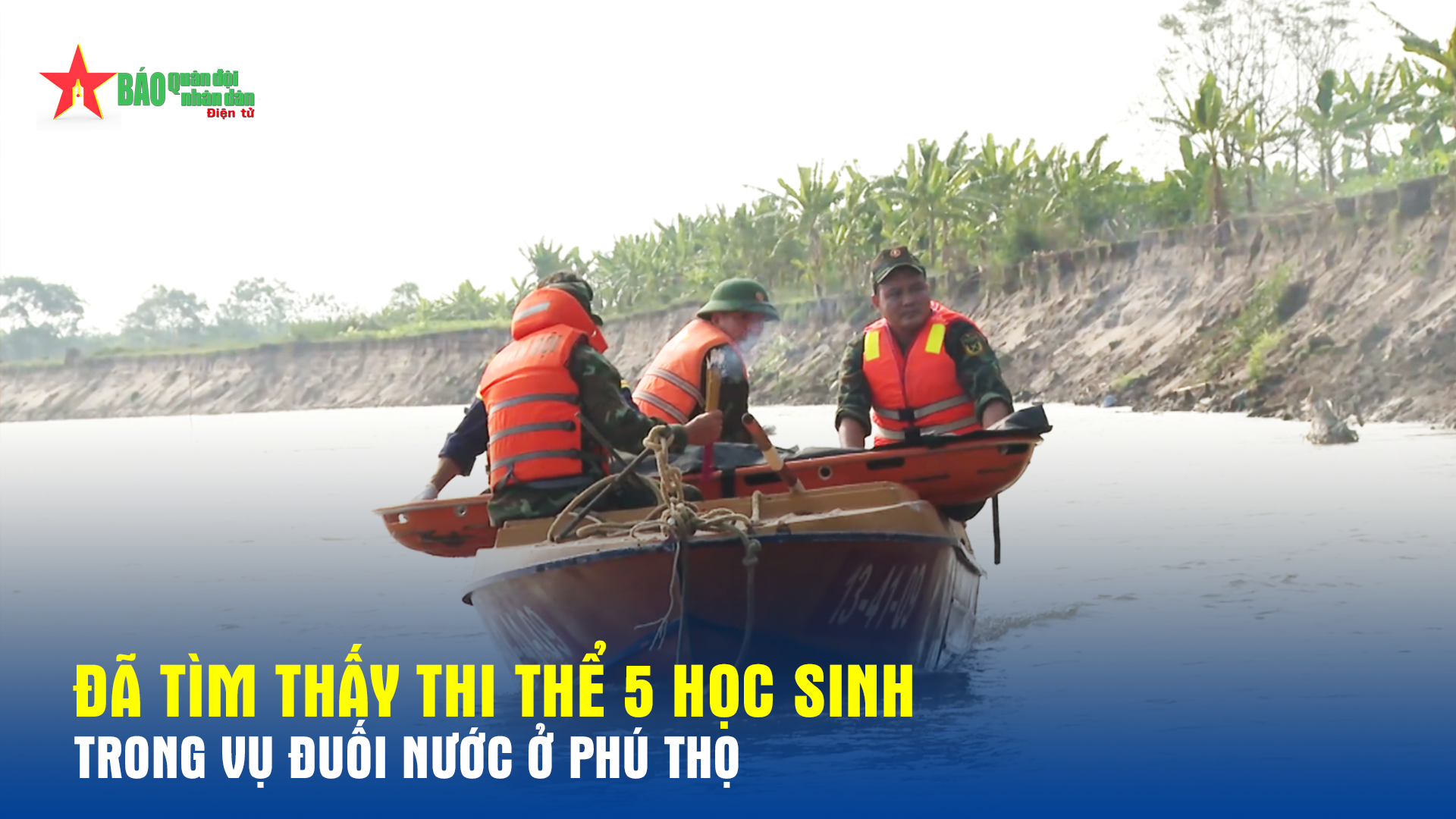 Với sự nỗ lực tìm kiếm của lực lượng Quân đội, Công an, sáng sớm nay, các lực lượng chức năng đã tìm thấy thi thể 3 học sinh ở xã Hiền Quan, huyện Tam Nông, tỉnh Phú Thọ trong vụ đuối nước ở sông Hồng. Như vậy, tính đến thời điểm sáng nay, cả 5 thi thể học sinh đã được tìm thấy.