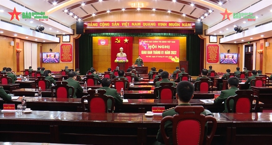 Sáng 27-1, Đại tướng Lương Cường, Ủy viên Bộ Chính trị, Ủy viên Thường vụ Quân ủy Trung ương, Chủ nhiệm Tổng cục Chính trị chủ trì Hội nghị giao ban Tổng cục tháng 1, triển khai nhiệm vụ công tác trọng tâm tháng 2-2022.