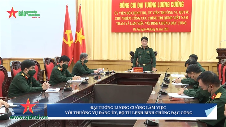 Chiều 4-11, Đại tướng Lương Cường đã đến thăm và làm việc với Thường vụ Đảng ủy, Bộ tư lệnh Binh chủng Đặc công. Đây là lực lượng chiến đấu đặc biệt tinh nhuệ của Quân đội nhân dân Việt Nam, có phương pháp tác chiến linh hoạt, táo bạo, bất ngờ.