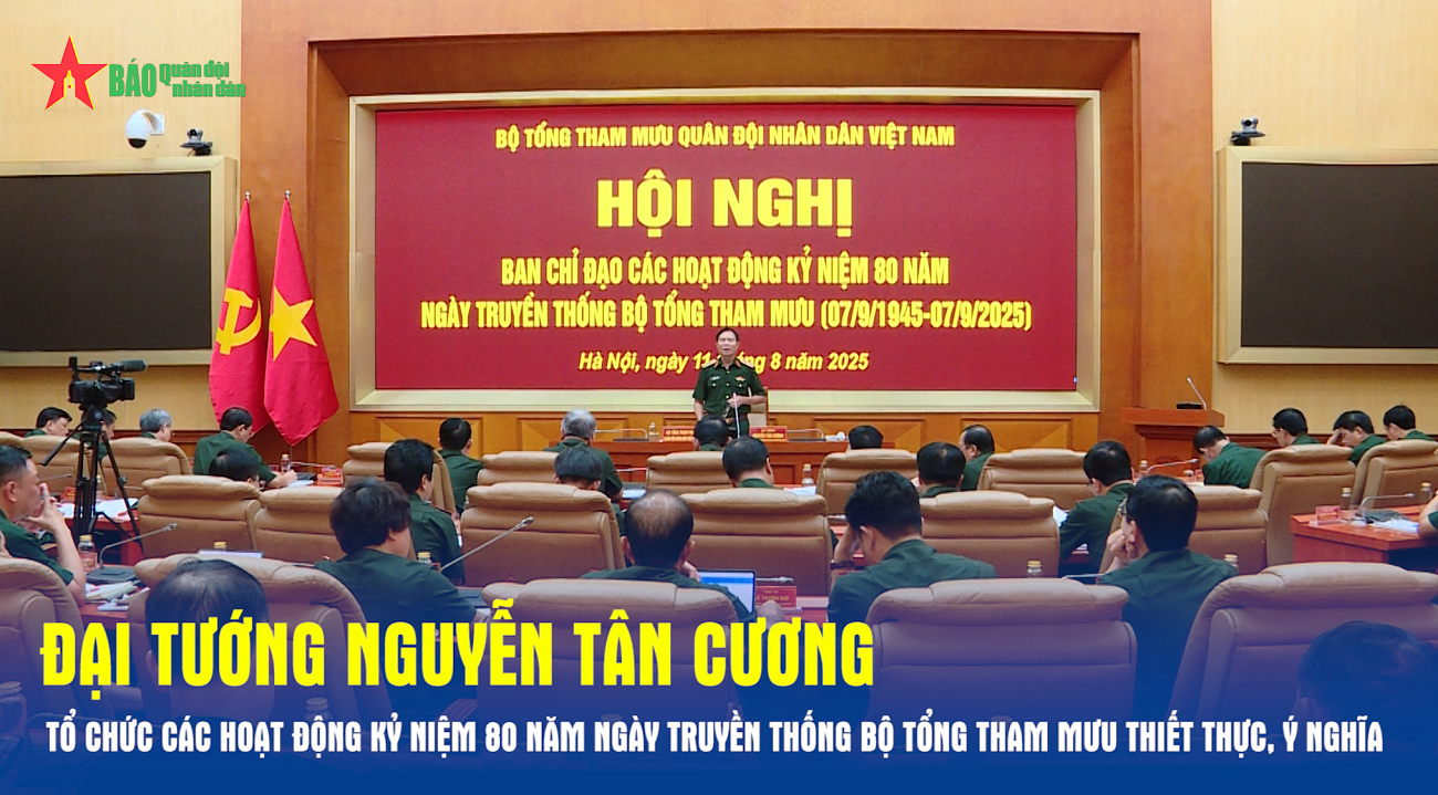 Sáng 11-8, Đại tướng Nguyễn Tân Cương, Ủy viên Trung ương Đảng, Ủy viên Thường vụ Quân ủy Trung ương, Tổng Tham mưu trưởng Quân đội nhân dân Việt Nam, Thứ trưởng Bộ Quốc phòng, chủ trì Hội nghị Ban chỉ đạo các hoạt động kỷ niệm 80 năm Ngày truyền thống Bộ Tổng Tham mưu Quân đội nhân dân Việt Nam.