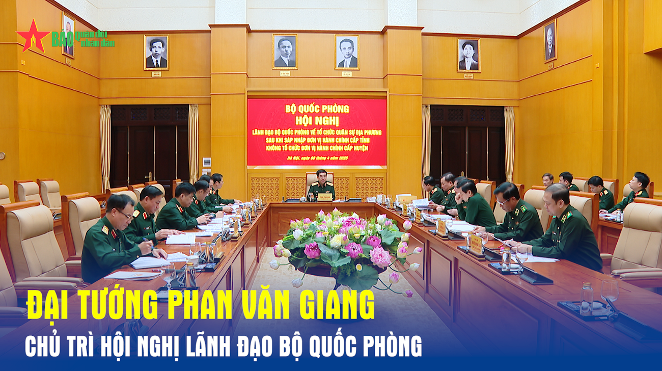 Sáng 8-4, tại Hà Nội, Đại tướng Phan Văn Giang chủ trì Hội nghị Lãnh đạo Bộ Quốc phòng về tổ chức quân sự địa phương sau khi sáp nhập đơn vị hành chính cấp tỉnh không tổ chức đơn vị hành chính cấp huyện.