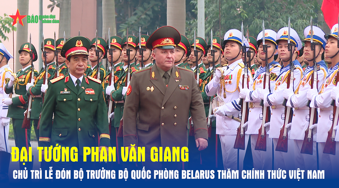 Sáng 17-12, tại Hà Nội, Đại tướng Phan Văn Giang chủ trì Lễ đón chính thức Trung tướng Khrenin Viktor Gennadievich, Bộ trưởng Quốc phòng Cộng hòa Belarus cùng Đoàn đại biểu cấp cao thăm chính thức Việt Nam.