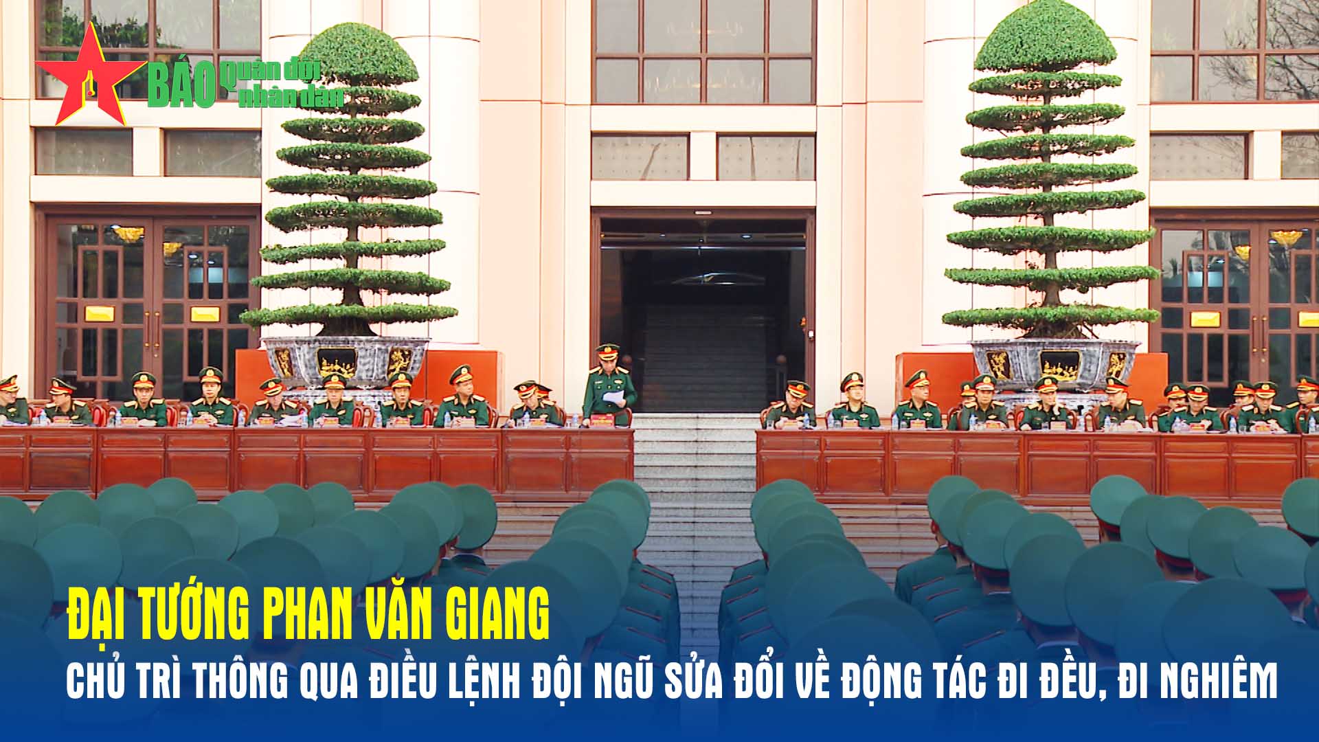 Chiều 6-4, Đại tướng Phan Văn Giang, Ủy viên Bộ Chính trị, Phó bí thư Quân ủy Trung ương, Bộ trưởng Bộ Quốc phòng chủ trì thông qua điều lệnh đội ngũ sửa đổi về động tác đi đều, đi nghiêm.