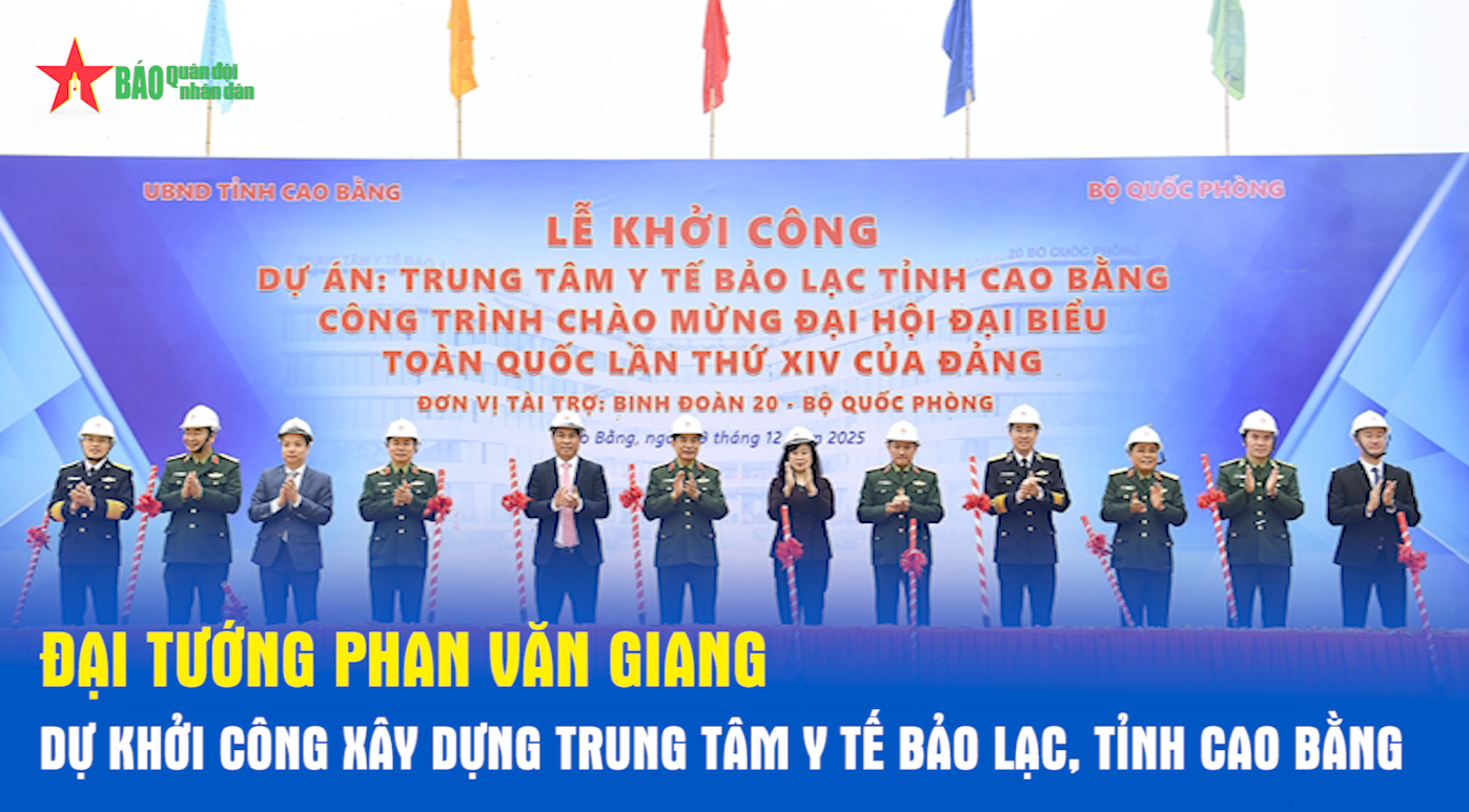 Sáng 29-12, tại xã Bảo Lạc, tỉnh Cao Bằng, Binh đoàn 20 - Tổng công ty Tân Cảng Sài Gòn phối hợp với Tỉnh ủy, UBND tỉnh Cao Bằng tổ chức Lễ khởi công xây dựng Trung tâm y tế Bảo Lạc. Đại tướng Phan Văn Giang, Ủy viên Bộ Chính trị, Phó bí thư Quân ủy Trung ương, Bộ trưởng Bộ Quốc phòng dự và phát biểu chỉ đạo tại buổi lễ.