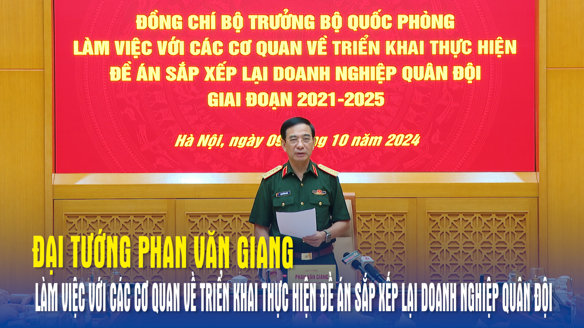 Sáng 9-10, Đại tướng Phan Văn Giang, Ủy viên Bộ Chính trị, Phó bí thư Quân ủy Trung ương, Bộ trưởng Bộ Quốc phòng chủ trì làm việc với các cơ quan về triển khai thực hiện Đề án sắp xếp lại doanh nghiệp Quân đội giai đoạn 2021-2025.