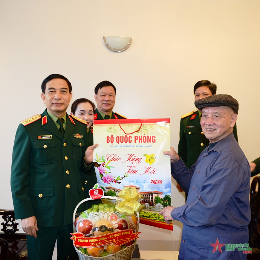 Chiều 16-12, Đại tướng Phan Văn Giang đến thăm, tặng quà Đại tướng Phạm Văn Trà.