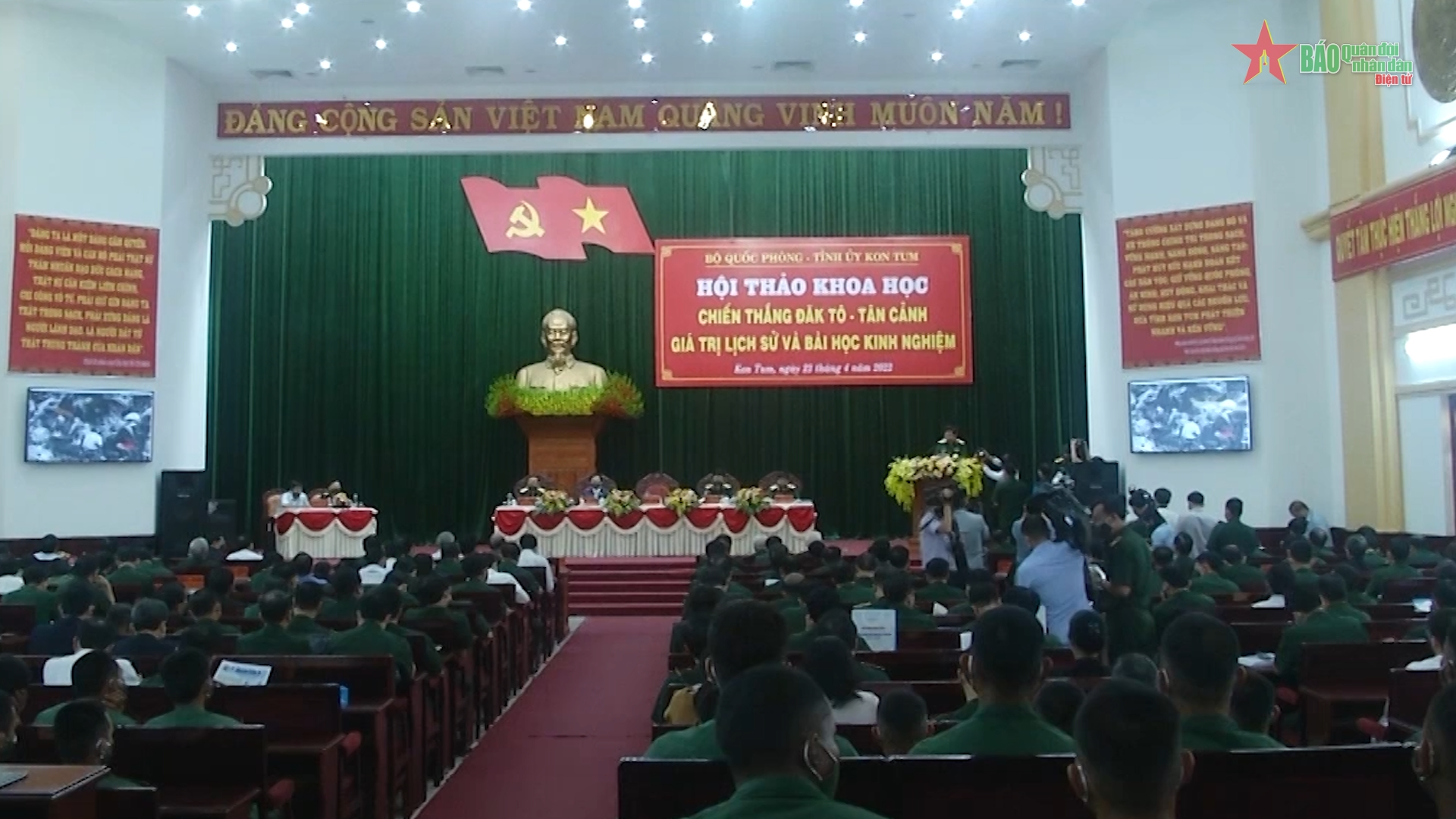 Sáng 22-4, tại thành phố Kon Tum, tỉnh Kon Tum, Bộ Quốc phòng phối hợp với Tỉnh ủy Kon Tum tổ chức Hội thảo khoa học cấp Bộ với chủ đề “Chiến thắng Đăk Tô-Tân Cảnh-Giá trị lịch sử và bài học kinh nghiệm”