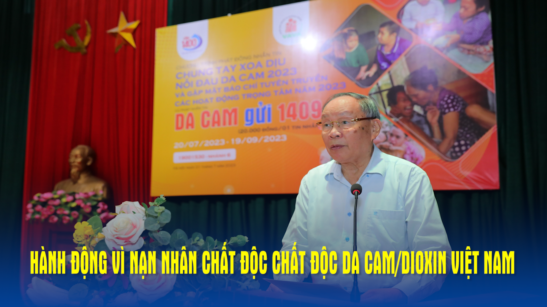 Hội Nạn nhân chất độc da cam/dioxin Việt Nam và Cổng Thông tin điện tử nhân đạo quốc gia 1400 tổ chức Lễ công bố và phát động Chương trình nhắn tin từ thiện “Chung tay xoa dịu nỗi đau da cam năm 2023", sáng 21-7, với cú pháp nhắn tin: DA CAM gửi 1409 (mỗi tin nhắn là 20.000 đồng)