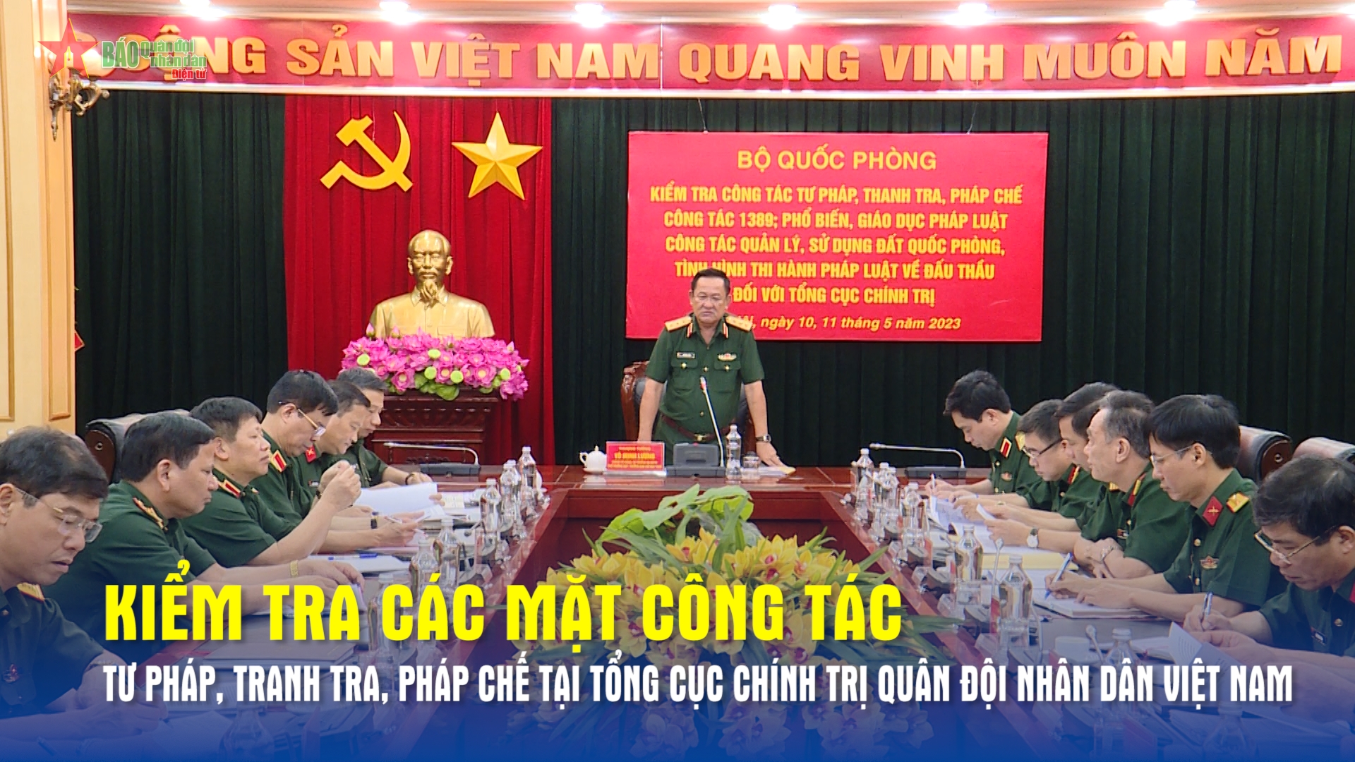Sáng 11-5, tại Hà Nội, Thượng tướng Võ Minh Lương, Ủy viên Trung ương Đảng, Ủy viên Thường vụ Quân ủy Trung ương, Thứ trưởng Bộ Quốc phòng chủ trì đoàn công tác Bộ Quốc phòng kiểm tra các mặt công tác: Tư pháp, thanh tra, pháp chế, 1389; phổ biến, giáo dục pháp luật; quản lý, sử dụng đất quốc phòng và tình hình thi hành pháp luật về đấu thầu đối với Tổng cục Chính trị Quân đội nhân dân Việt Nam.