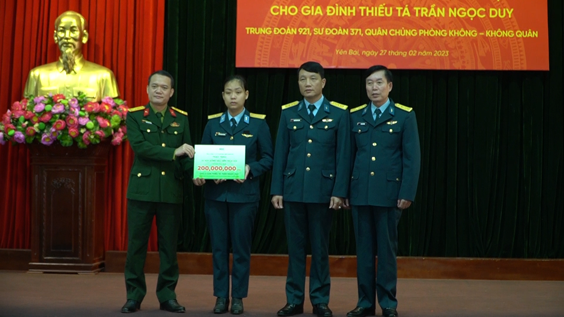Để tri ân sự đóng góp to lớn của đồng chí đối với Quân đội, Tổng Công ty Cổ phần Bảo hiểm Quân đội đã trao tặng gia đình 02 hợp đồng bảo hiểm nhân thọ trọn đời tổng trị giá 200 triệu đồng cho hai con Thiếu tá Trần Ngọc Duy
