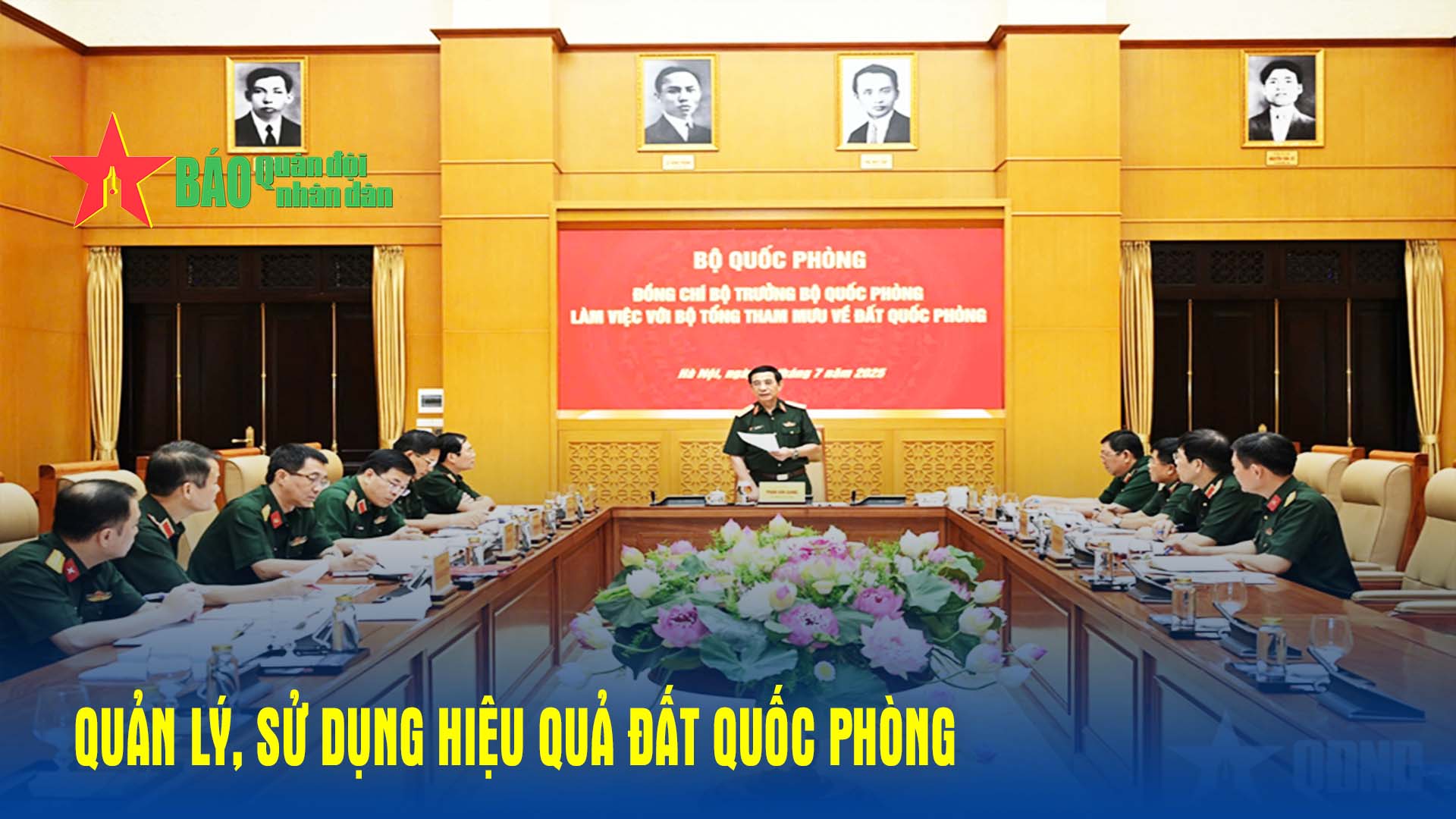 Sáng 15-7, tại Hà Nội, Đại tướng Phan Văn Giang, Uỷ viên Bộ Chính trị, Phó bí thư Quân uỷ Trung ương, Bộ trưởng Bộ Quốc phòng chủ trì làm việc với Bộ Tổng Tham mưu về quy hoạch, quản lý, sử dụng đất quốc phòng.