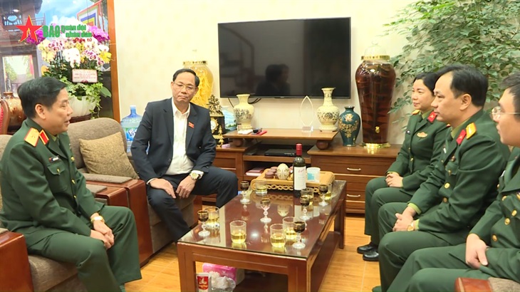 Thiếu tướng Nguyễn Văn Gấu, Ủy viên Trung ương Đảng, Phó chủ nhiệm Tổng cục Chính trị Quân đội nhân dân Việt Nam đến thăm, chúc sức khỏe Thượng tướng Trần Quang Phương, Ủy viên Trung ương Đảng, Phó chủ tịch Quốc hội