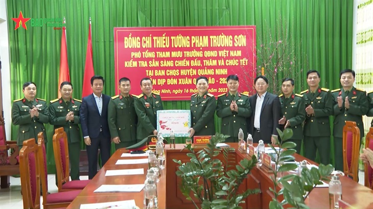 Trước thềm Xuân Quý Mão 2023, Thiếu tướng Phạm Trường Sơn đã trao quà vả gửi lời chúc đến toàn thể cán bộ, chiến sĩ các cơ quan, đơn vị một năm mới tràn đầy niềm vui, hạnh phúc, đoàn kết và thực hiện thắng lợi mọi nhiệm vụ được giao.