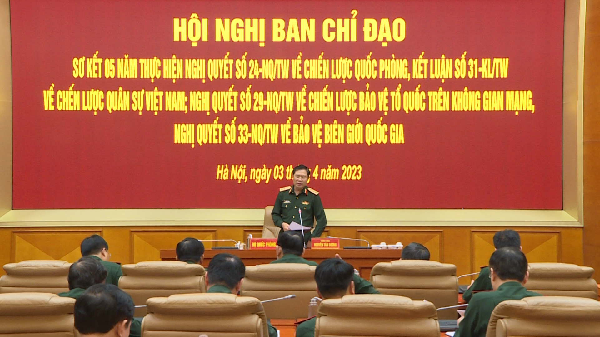 Chiều 3-4, tại Hà Nội, Thượng tướng Nguyễn Tân Cương, Ủy viên Trung ương Đảng, Ủy viên Thường vụ Quân ủy Trung ương, Tổng Tham mưu trưởng Quân đội nhân dân Việt Nam, Thứ trưởng Bộ Quốc phòng chủ trì Hội nghị Ban chỉ đạo sơ kết 5 năm thực hiện các nghị quyết, kết luận của Trung ương.