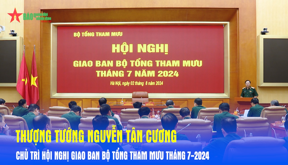 Chiều 2-8, Thượng tướng Nguyễn Tân Cương, Ủy viên Trung ương Đảng, Ủy viên Thường vụ Quân ủy Trung ương, Tổng Tham mưu trưởng Quân đội nhân dân Việt Nam, Thứ trưởng Bộ Quốc phòng, chủ trì Hội nghị giao ban Bộ Tổng Tham mưu tháng 7-2024.
