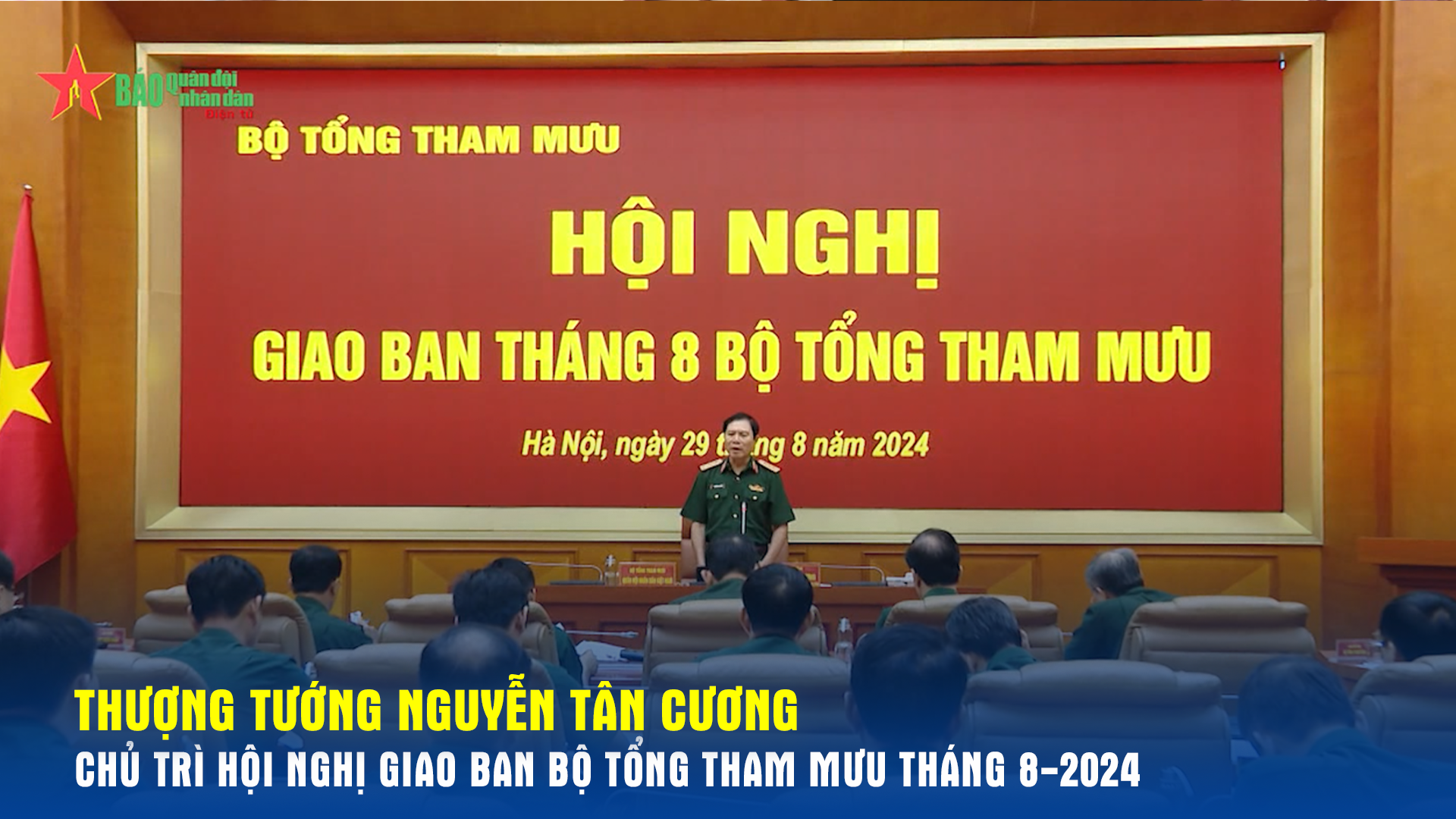 Sáng 29-8, Thượng tướng Nguyễn Tân Cương, Ủy viên Trung ương Đảng, Ủy viên Thường vụ Quân ủy Trung ương, Tổng Tham mưu trưởng Quân đội nhân dân (QĐND) Việt Nam, Thứ trưởng Bộ Quốc phòng, chủ trì Hội nghị giao ban Bộ Tổng Tham mưu tháng 8-2024.