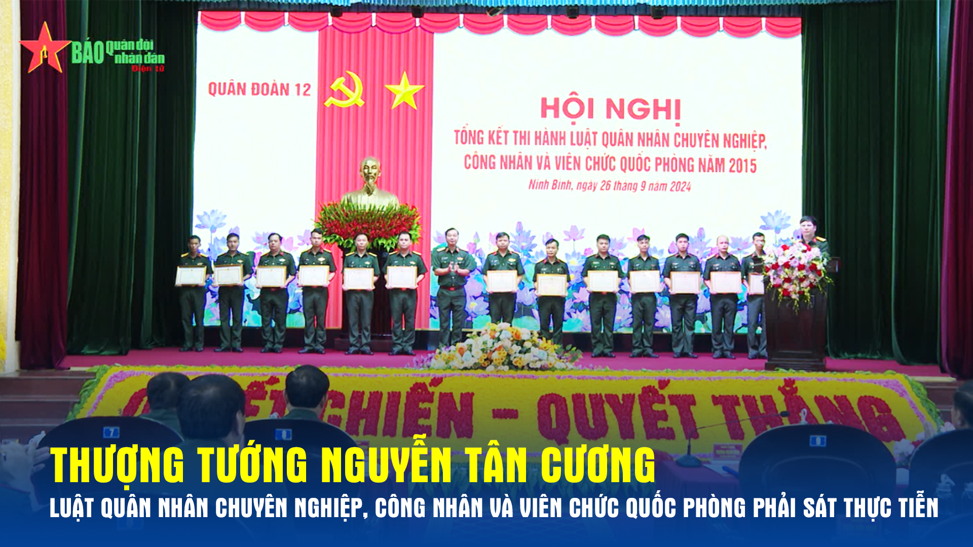 Ngày 26-9, tại Ninh Bình, Quân đoàn 12 tổ chức Hội nghị Tổng kết thi hành Luật Quân nhân chuyên nghiệp, công nhân và viên chức quốc phòng năm 2015 (gọi tắt là Luật). Thượng tướng Nguyễn Tân Cương, Ủy viên Trung ương Đảng, Ủy viên Thường vụ Quân ủy Trung ương, Tổng Tham mưu trưởng Quân đội nhân dân Việt Nam, Thứ trưởng Bộ Quốc phòng dự và chỉ đạo hội nghị.