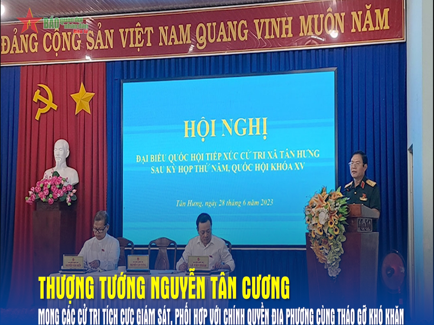 Ngày 28-6, Thượng tướng Nguyễn Tân Cương cùng các đại biểu Quốc hội tỉnh Bình Dương đã tiếp xúc cử tri xã An Tây (thị xã Bến Cát) và xã Tân Hưng (huyện Bàu Bàng) sau Kỳ họp thứ 5, Quốc hội khóa XV.