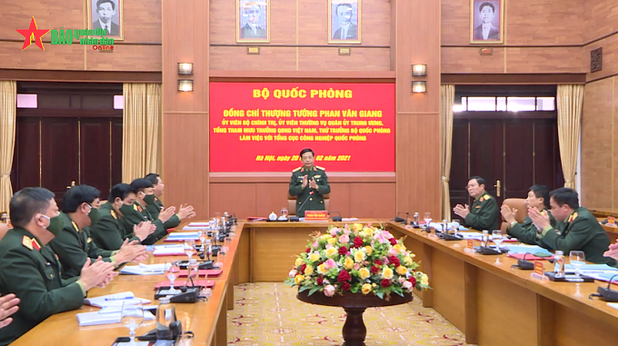 Thượng tướng Phan Văn Giang làm việc với Tổng cục Kỹ thuật và Tổng cục Công nghiệp Quốc phòng