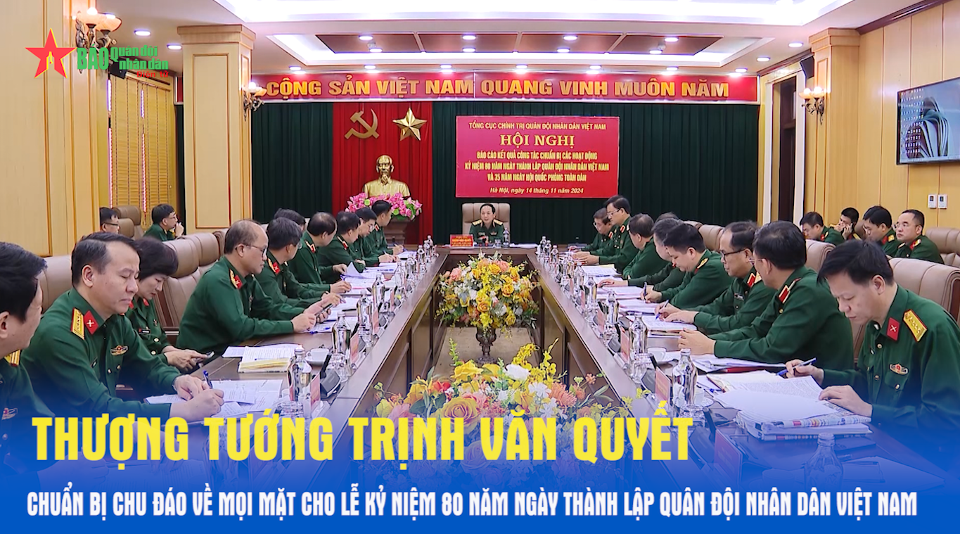 Sáng 14-11, Tổng cục Chính trị Quân đội nhân dân Việt Nam tổ chức Hội nghị Báo cáo kết quả công tác chuẩn bị các hoạt động kỷ niệm 80 năm Ngày thành lập Quân đội nhân dân (QĐND) Việt Nam và 35 năm Ngày hội Quốc phòng toàn dân. Thượng tướng Trịnh Văn Quyết, Bí thư Trung ương Đảng, Ủy viên Thường vụ Quân ủy Trung ương, Chủ nhiệm Tổng cục Chính trị Quân đội nhân dân Việt Nam dự và chủ trì.