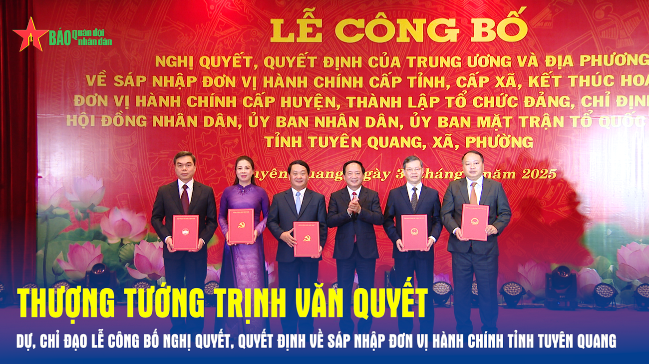 Sáng 30-6, Thượng tướng Trịnh Văn Quyết dự và chỉ đạo Lễ công bố nghị quyết, quyết định của Trung ương và địa phương về sáp nhập đơn vị hành chính cấp tỉnh, cấp xã, kết thúc hoạt động đơn vị hành chính cấp huyện, thành lập tổ chức đảng, chỉ định cấp ủy, Hội đồng nhân dân, Ủy ban nhân dân, Ủy ban Mặt trận Tổ quốc Việt Nam tỉnh Tuyên Quang, xã, phường.