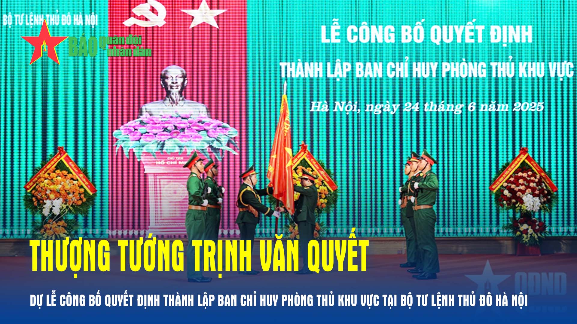 Sáng 24-6, Thượng tướng Trịnh Văn Quyết, Bí thư Trung ương Đảng, Ủy viên Thường vụ Quân ủy Trung ương, Chủ nhiệm Tổng cục Chính trị Quân đội nhân dân (QĐND) Việt Nam chủ trì Lễ công bố quyết định thành lập Ban chỉ huy Phòng thủ khu vực tại Bộ tư lệnh Thủ đô Hà Nội.
