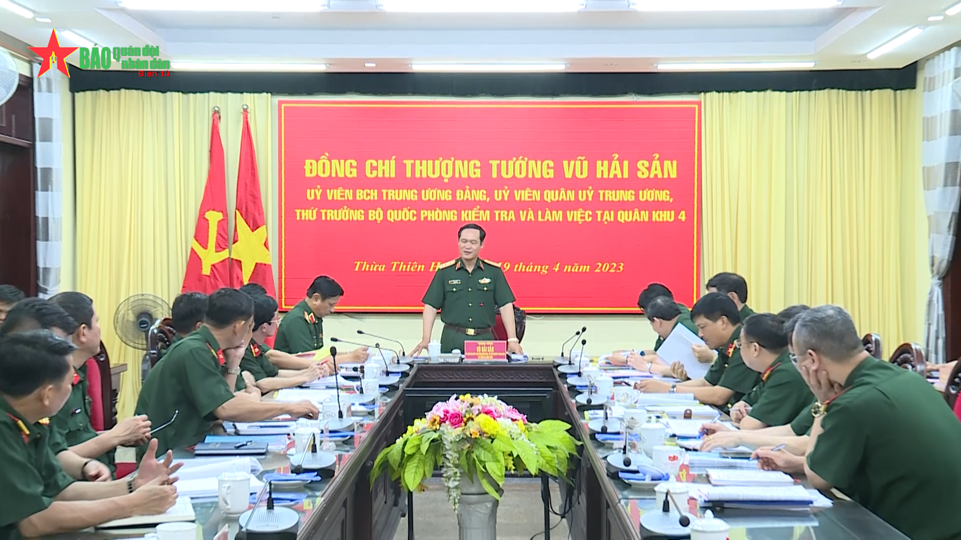 hiều 19-4, tại tỉnh Thừa Thiên Huế, đoàn công tác Bộ Quốc phòng do Thượng tướng Vũ Hải Sản, Ủy viên Trung ương Đảng, Thứ trưởng Bộ Quốc phòng làm trưởng đoàn đã kiểm tra kết quả thực hiện nhiệm vụ quân sự, quốc phòng; công tác kế hoạch đầu tư, xây dựng cơ bản tại Quân khu 4.